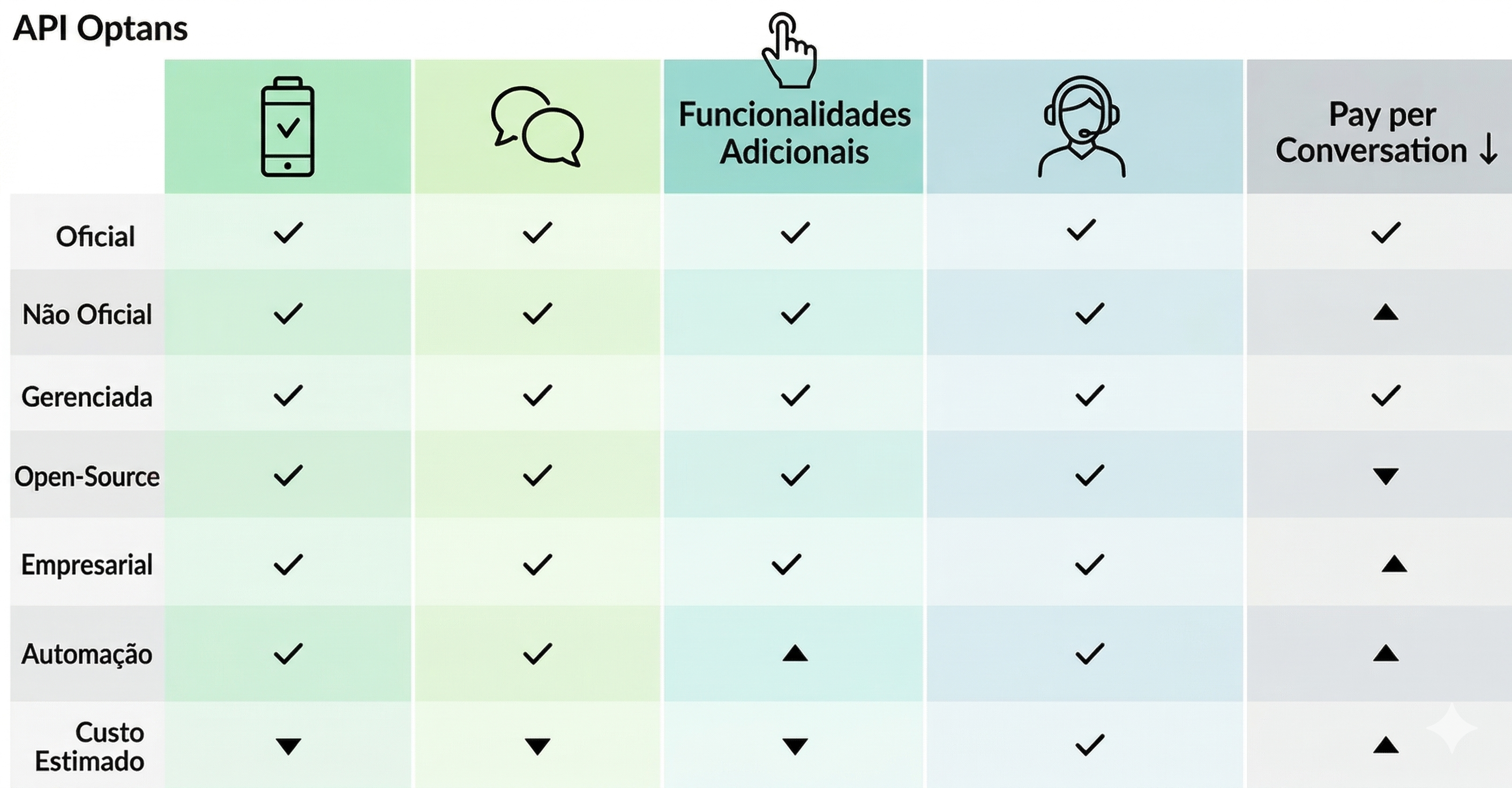 - Enterprises, bancos e grandes marcas: prioridade para Cloud API oficial, Gupshup e soluções enterprise, focando em segurança, SLA e compliance.